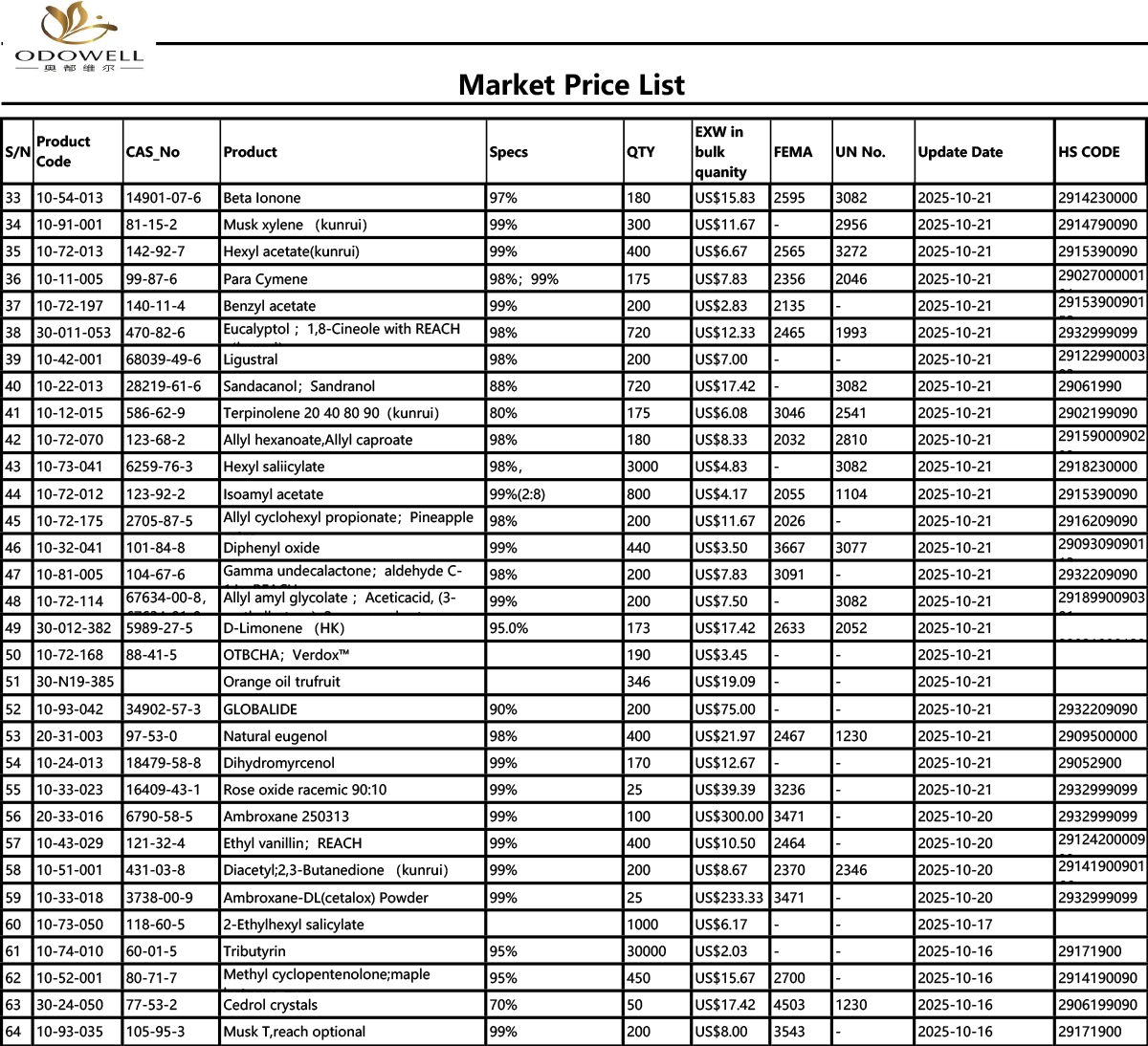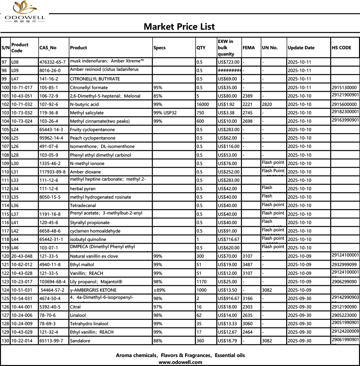 اوڈول مارکیٹ کی قیمت کی فہرست -2025.9.30-2025.10.24