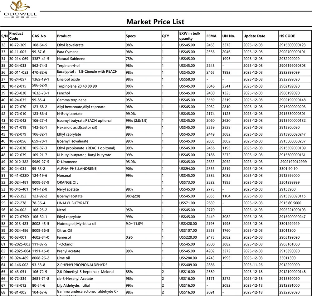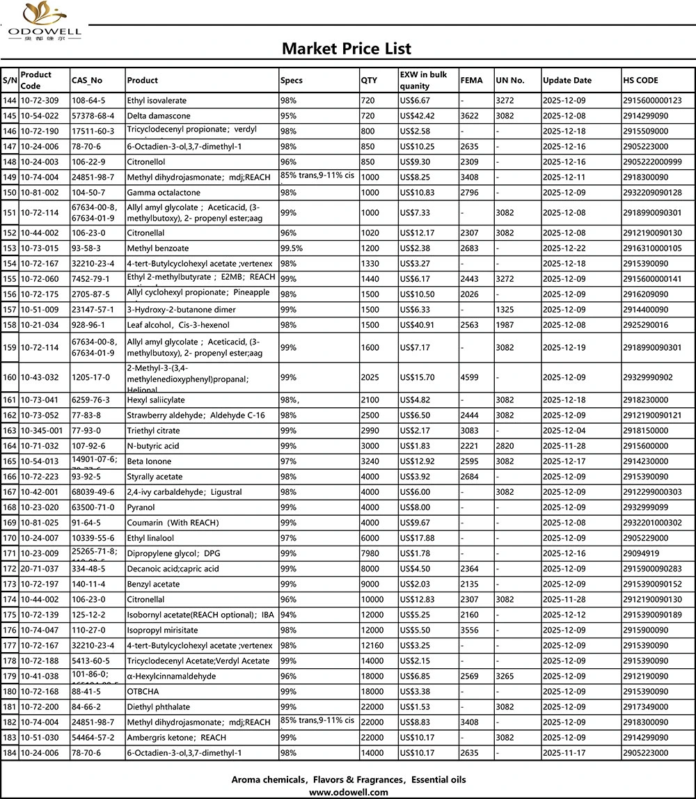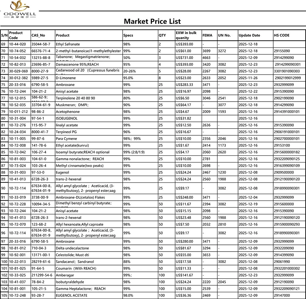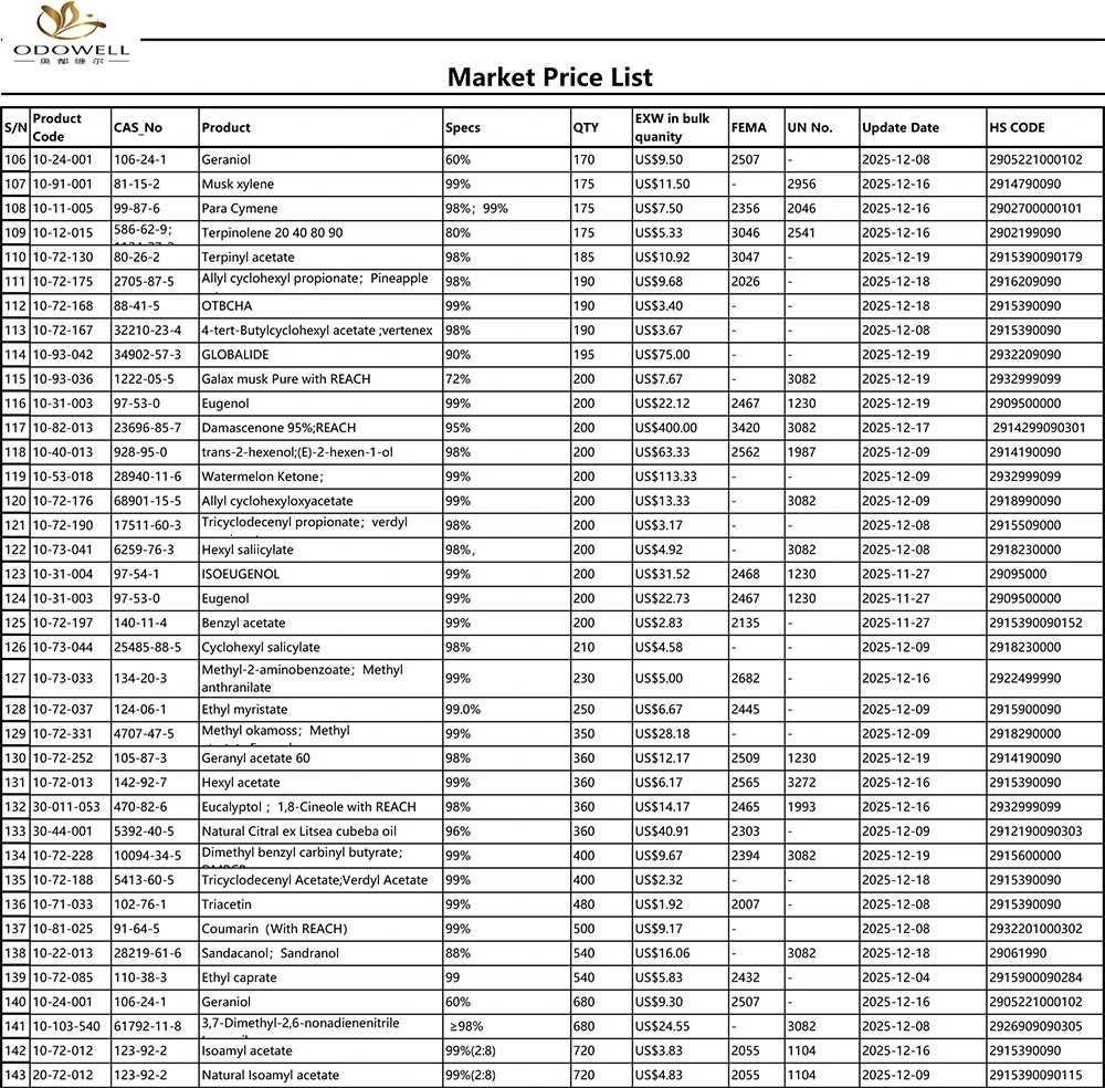 اوڈویل مارکیٹ قیمت کی فہرست -2025.11.26-2025.12.26